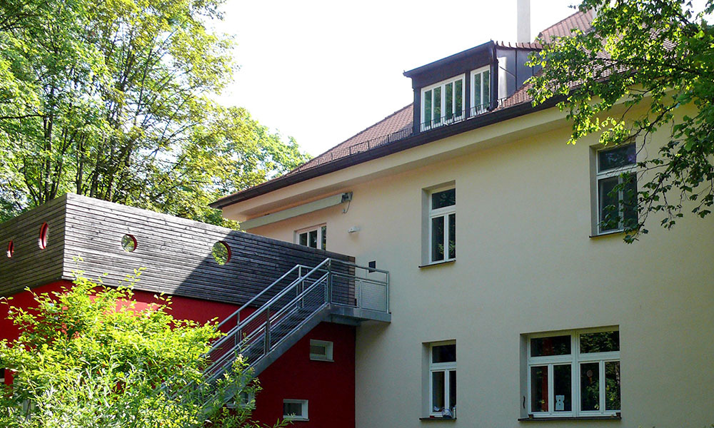 Kinderhaus Lochhausen Umbau, Sanierung und Erweiterung eines 100 Jahre alten Gebäudes, seit 1975 als KITA genutzt Leistungsphasen (HOAI) 1-9 Projektdaten Erweiterung des Bestandsgebäudes durch einen modernen AnbauUntergeschoss: Bewegungsraum, AbstellflächenErdgeschoss: Elterninitiativ-Tagesstätte für 20 Krippenkinder und 25 KindergartenkinderObergeschoss: Heilpädagogische Tagesstätte für 12 Kindergartenkinder und 12 Hortkinder, KücheDachgeschoss: Büros und TeamräumeNutzfläche 865 m² Bauherr Kinderhaus Lochhausen e.V. Landeshauptstadt München Standort Ziegeleistraße 10, München-Lochhausen